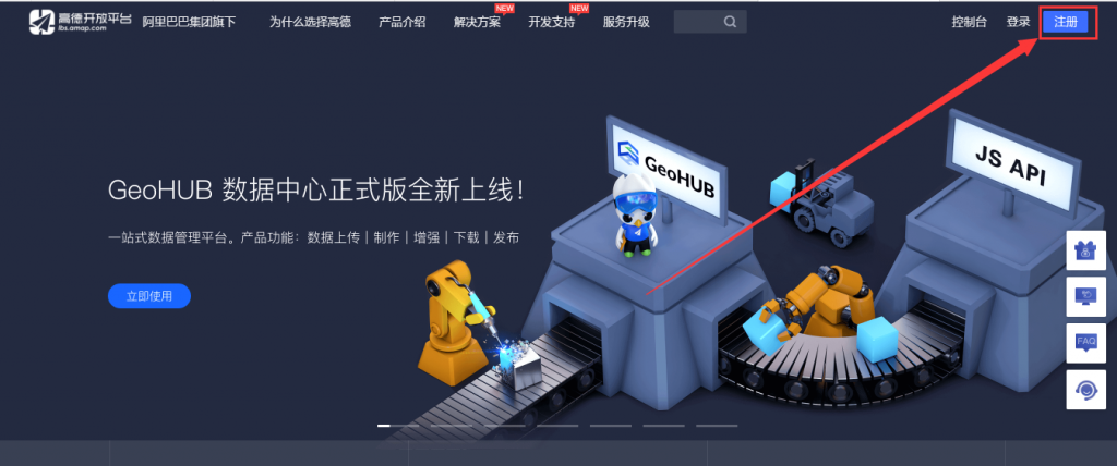 1、登陆高德地图开发者平台,https://lbs.amap.com/ 如果还没有账号,请先注册账号。