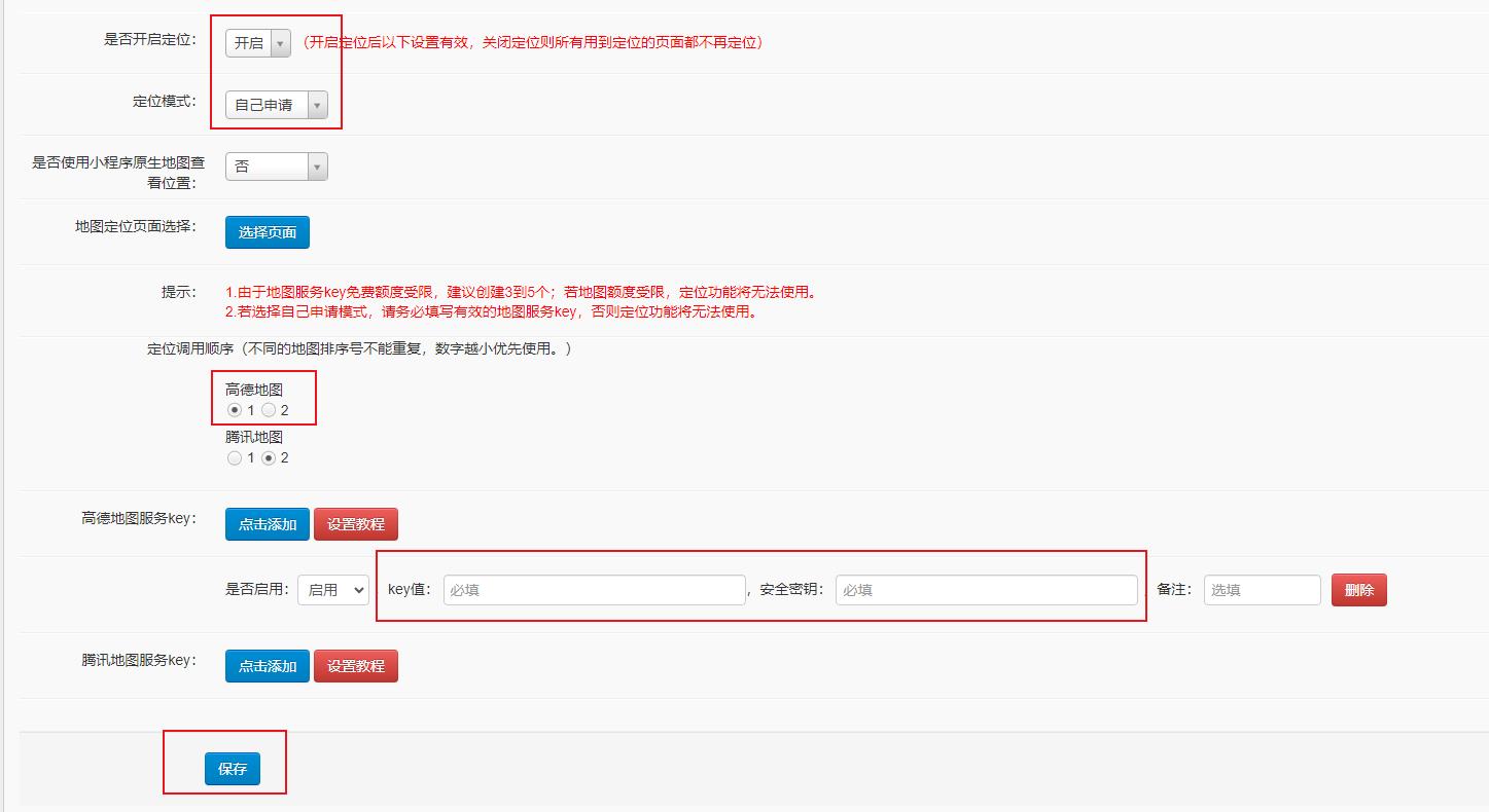 若用于顾客定位,填写到地图定位设置,如下图所示。