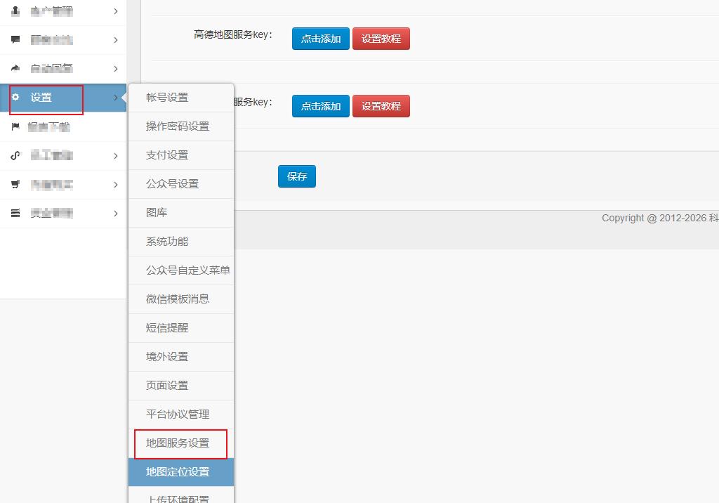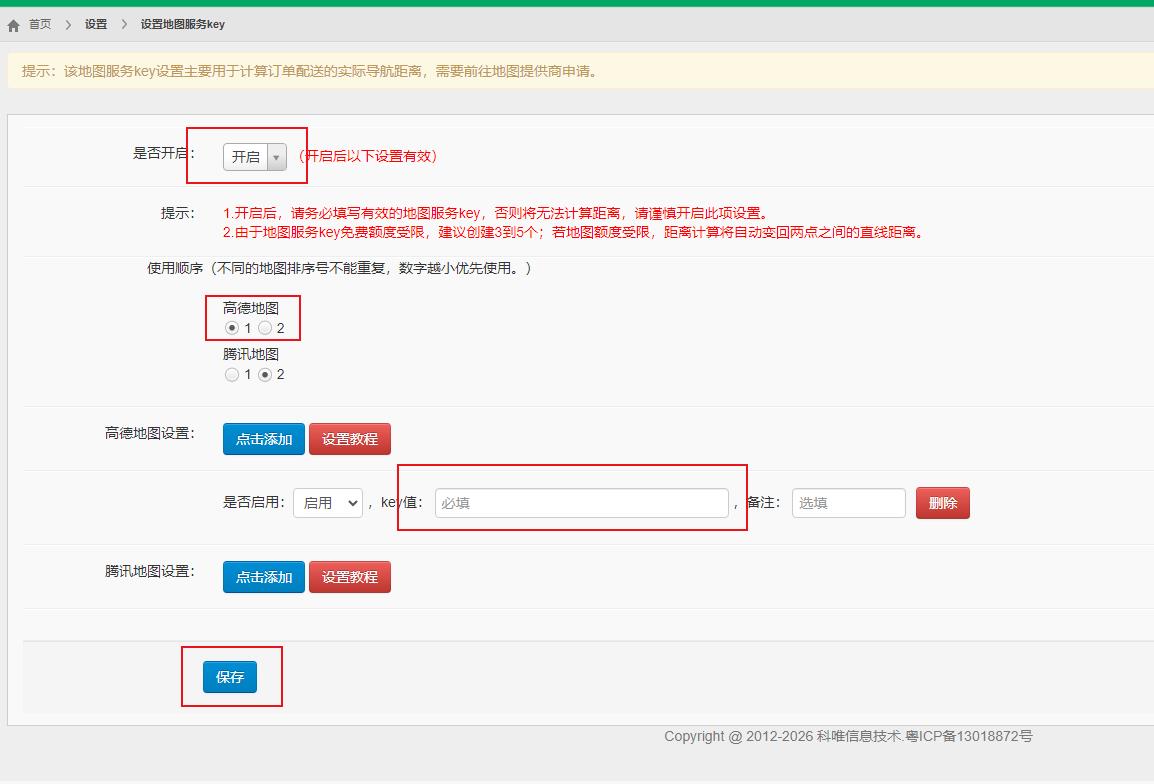 填入云快卖后台,若用于地图服务,例如计算导航距离的,填写到地图服务设置,如下图所示。