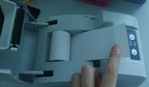 提示:出纸口留出一点白纸,装好纸张后请盖上盖子。